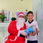 Os olhares curiosos e admirados puderam ser vistos nas crianças com a chegada do Papai Noel, que conversou com todas e ainda fez a distribuição de presentes.