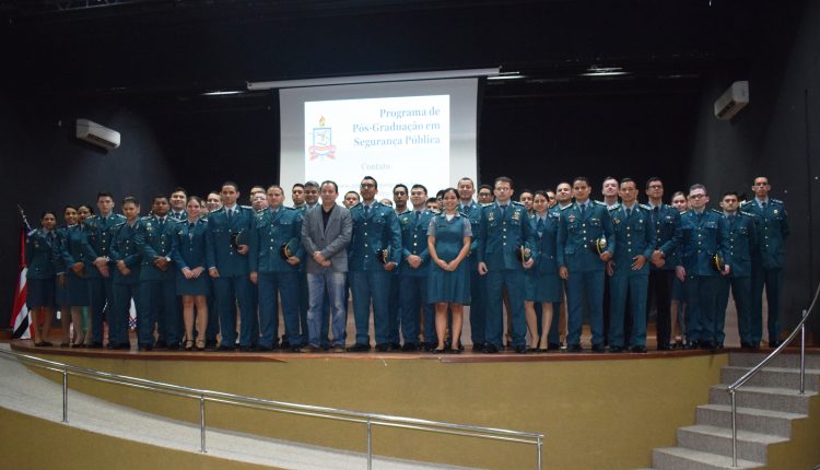 A Polícia Militar do Maranhão, por meio da Academia de Polícia Militar Gonçalves Dias – APMGD, realizou na manhã desta segunda-feira (18) a Aula inaugural da 6º Turma do Curso de Especialização em Gestão de Segurança Pública – CEGESP 2019. A Turma é composta por 45 capitães, dentre eles, três capitães da Polícia Militar do Paraná e dois capitães da Polícia Militar do Rio de Janeiro. O evento aconteceu no Auditório Central da Universidade Federal do Maranhão.