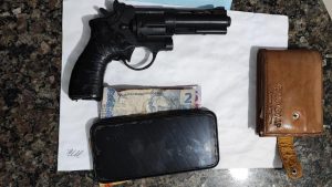 Policiais militares do 11º batalhão conduzem suspeito de posse de uma arma de brinquedo e moto roubada em Timon-MA 2 de maio de 2023