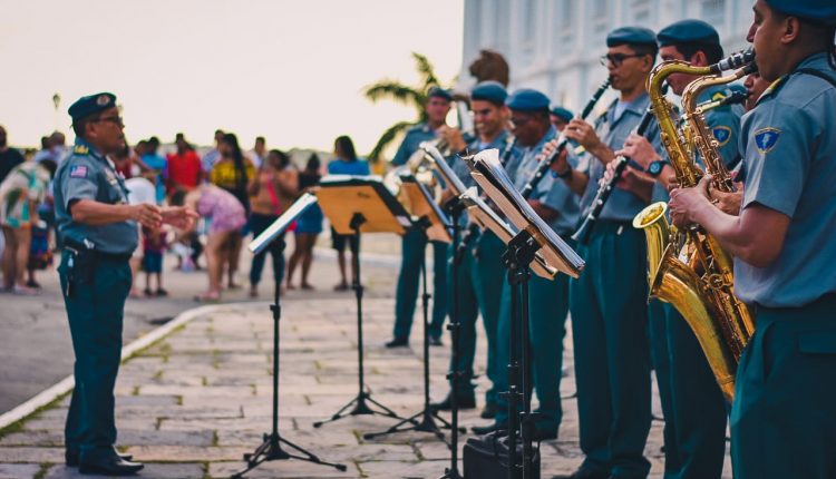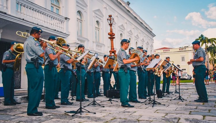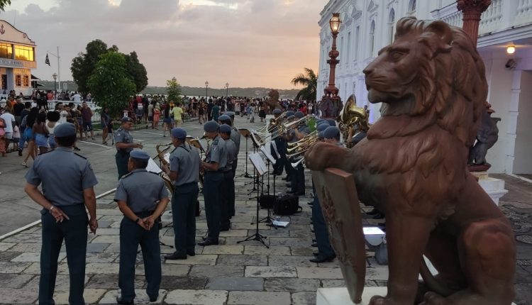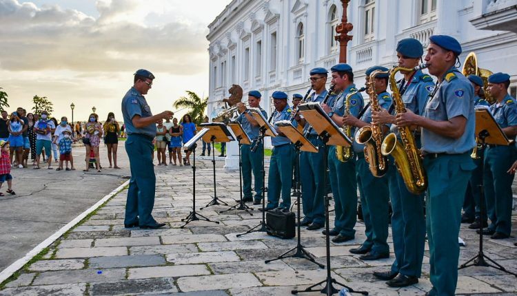 A Banda de Música da Polícia Militar do Maranhão (PMMA), realizou no finalzinho da tarde de domingo (12), uma apresentação especial em homenagem ao dia dos Namorados. A apresentação aconteceu na frente do Palácio dos Leões, um dos cartões postais da capital maranhense e contou com um lindo pôr do sol para abrilhantar ainda mais o momento romântico.