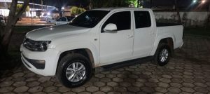 Além da Amarok foi encontrado no interior do veículo 396,00 (trezentos e noventa e seis) reais; 01(uma) Carteira porta cédula; 03(três) Cartões; 02(dois) Iphones e 01(uma) chave.