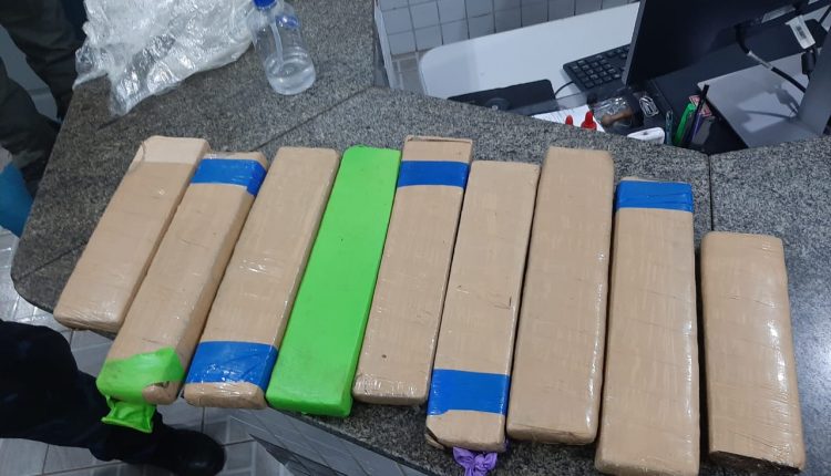Foi feito buscas no endereço do suspeito e encontrado aproximadamente dez quilos de substância semelhante a maconha, foi apreendido cinco celulares e R$: 627,00 em dinheiro; todos foram conduzidos para a delegacia de Alcântara para as medidas cabíveis.