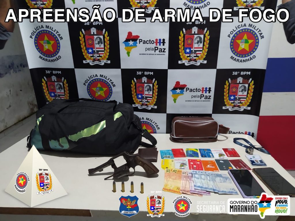 Ao avistarem os policiais, os indivíduos tentaram fugir e um dos suspeitos efetuou disparos contra os PM’s, que prontamente revidaram a injusta agressão. Os militares deram voz de prisão aos criminosos e durante a abordagem foram encontrados os seguintes materiais: um revólver calibre .38, com numeração suprimida, quatro munições intactas, dois celulares, uma quantia em dinheiro e outros objetos.