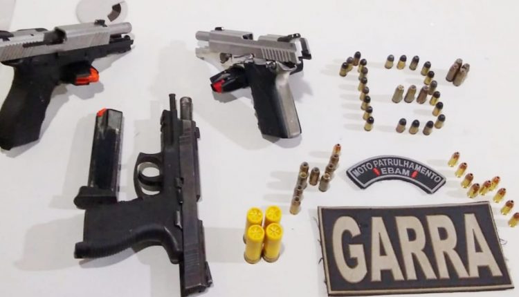 Após buscas pelas proximidades foram encontradas mais duas armas de fogo abandonadas pelos criminosos, uma pistola Taurus calibre .40 de numeração SCY04014 com 1 carregador e uma pistola Taurus calibre 380 de numeração KKW02274 com 1 carregador. Foi apreendido também uma bolsa contendo quatro munições de calibre 20, trinta e duas munições de calibre 380 e quinze munições de calibre .40.