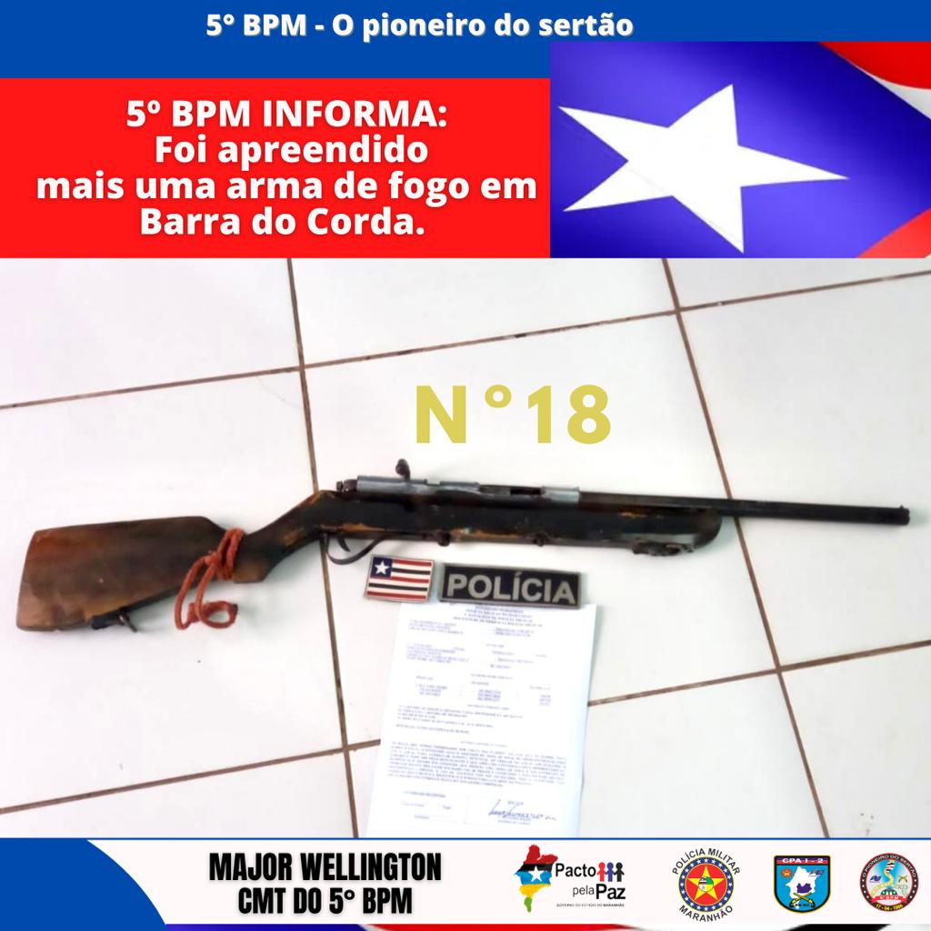 Em três ações distintas e em menos de 24 horas policiais militares do 5º Batalhão apreenderam três armas de fogo na cidade de Barra do Corda (MA). As ações aconteceram neste último final de semana e resultou na apreensão de uma pistola calibre 380, uma espingarda do tipo bate -bucha e uma arma de fogo de fabricação caseira calibre 32, além de munições.
