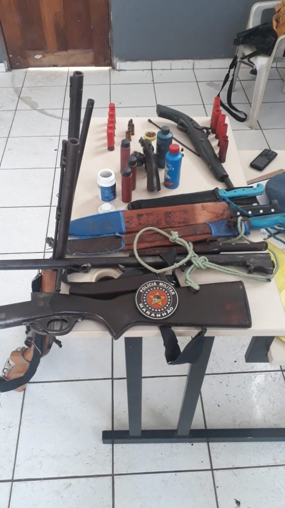 Os militares acompanharam a vítima até sua residência, foi quando o suspeito se aproximou e logo em seguida abordado pelos policiais, o homem foi identificado como, Francisco Sousa da Conceição e durante a revista foi encontrado um revólver calibre 38 com seis munições intactas e no interior da residência pode ser encontrado, uma espingarda calibre 12 com cinco munições intactas e sete deflagradas, três espingardas artesanais tipo bate bucha carregadas, uma arma de fogo artesanal tipo garruncha carregada, quatro recipientes contendo pólvora, dois recipientes contendo chumbo, bucha para carregamento de arma artesanal, quatro espoleta de munição calibre 12, oitenta e quatro espoletas para arma artesanal e quatro facões.