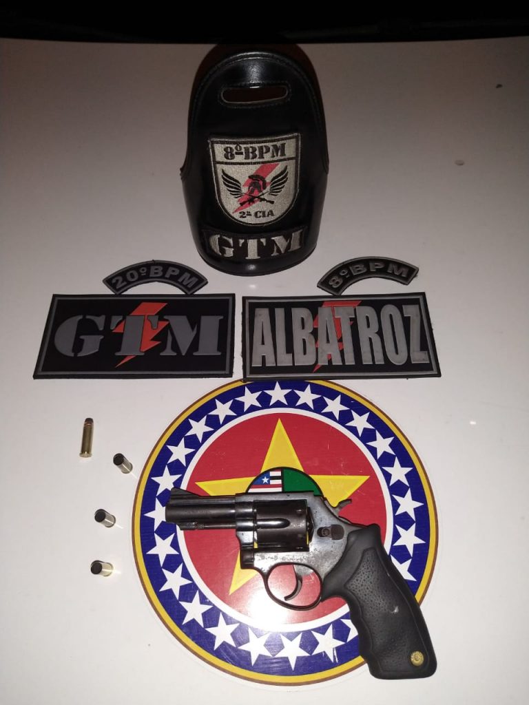 Os suspeitos foram presos com um revólver, calibre. 38, Taurus, Seis tiros, N° IH194291, com três munições deflagradas e uma intacta, um celular Multilaser preto, um fone de ouvido branco, um Certificado de registro e licenciamento de veículo, uma carteira nacional de habilitação, uma chave de veículo e um veículo marca Renault Sandero, cor vermelha, placa OIZ-8192, São Luís, MA.