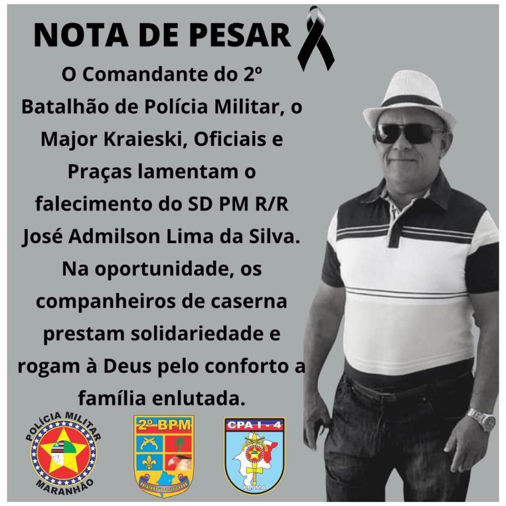 Com profundo pesar, a Polícia Militar do Maranhão, comunica o falecimento do soldado PM R/R José Admilson Lima da Silva.
