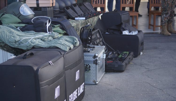 Também foram entregues pistolas Beretta, no calibre 9 mm, que serão destinadas as tropas especiais, bem como novos capacetes balísticos.