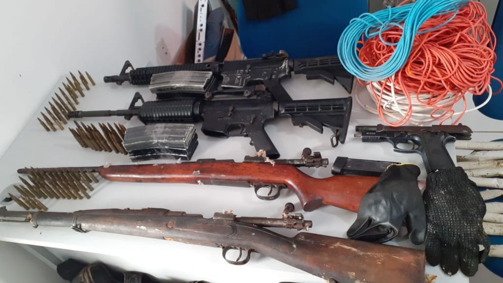 Foram apreendidos: dez dinamites Nitro penta, dois fuzis calibre 5.56; dois fuzis calibre 7.62; uma pistola, calibre 40 mm, pertencente a PMMA; sessenta e seis munições calibre 5.56; vinte e uma munições calibre 7.62; uma munição calibre 50; trinta e cinco munições calibre .40, que estavam em posse do acusado no momento da abordagem; quatro coletes balísticos; cordel detonante e espoletas.