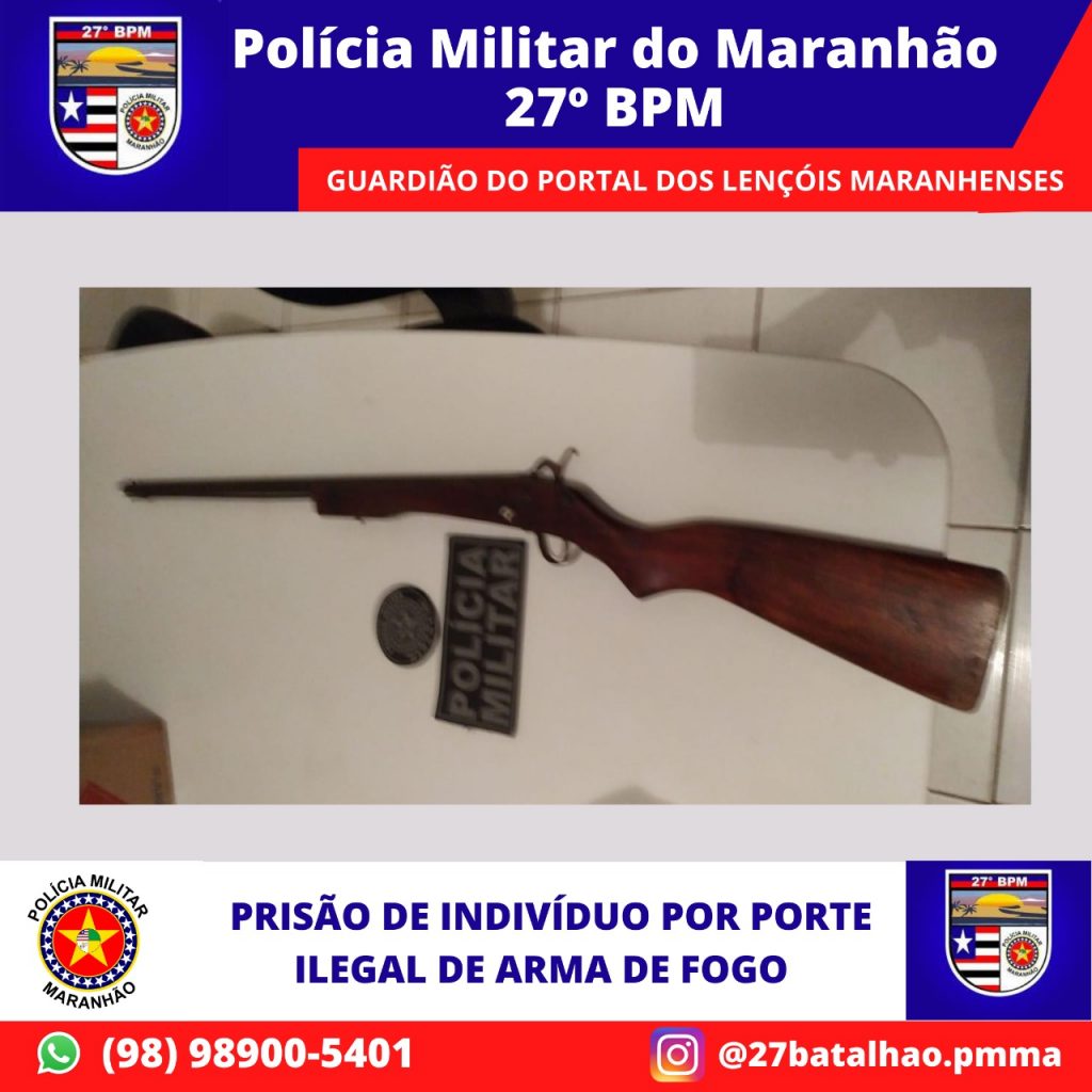 Em outra ação na quinta-feira (13), policiais militares do 27º BPM apreenderam mais uma arma de fogo na sua área de atuação. A ação aconteceu durante uma abordagem ao um homem no Bairro Vila Fé em Deus, na cidade de Santa Rita (MA) e resultou na apreensão de uma tipo bate bucha. Ele foi apresentado na delegacia por porte ilegal de arma de fogo.