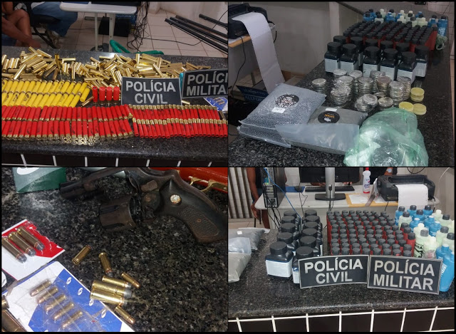 Ao chegar ao local da denúncia, um comércio situado na Rua Maria Pires Leite, localizada no bairro Turi I, foi constatado a veracidade da denúncia, onde foi apreendido: 01 (um) revólver calibre 38 de nº JA 52236, 04 (quatro) espingardas do tipo Bate Buchas, 84 (oitenta e quatro) tubos contendo pólvora, 59 (cinquenta e nove) caixas de espoletas, 11 (onze) tubos contendo pólvora CBC, 03 (três) cartuchos calibre 12 intactos, 40 (quarenta) cartuchos calibre 20 intactos, 69 (sessenta e nove) cartuchos calibre 32 intactos, 85 (oitenta e cinco) caixas contendo espoletas da marca Rossi, 100 (cem) espoletas para cartucho, além de 77 (setenta e sete) Kg de chumbo.