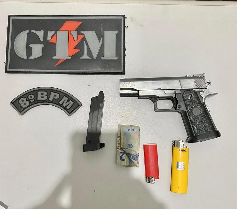 A segunda apreensão aconteceu no bairro Altos do Turu, em São Luís. Em patrulhamento na área, os militares identificaram dois homens suspeitos e com eles um simulacro de arma de fogo.