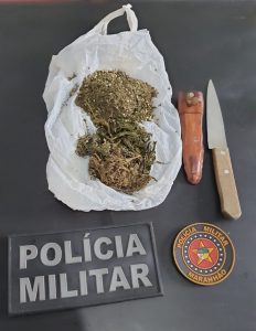 A equipe de Rádio Patrulha do 5º BPM, em Barra do Corda-MA, realizava a Operação Tiradentes, na manhã de quinta-feira (21), e ao chegar no Bairro Novo, em Itaipava do Grajaú-MA, abordou algumas pessoas e durante as buscas nas proximidades de um matagal foi encontrada uma porção de substância análoga a maconha, porém não foi possível encontrar o proprietário do entorpecente e da arma branca.