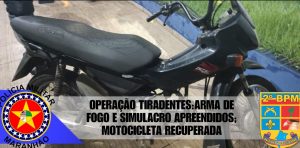 Na noite de sábado (23) a Polícia Militar do Maranhão realizava a Operação Tiradentes em Coelho Neto-MA, e recebeu informação de que uma motocicleta Honda/POP 100 de cor preta havia sido tomada de assalto por uma dupla portando arma de fogo. Uma equipe do 2º BPM, em Caxias-MA, deslocaram para o local e durante a ronda avistaram dois homens com a referida motocicleta roubada nas proximidades do Mercado do Produtor, na região central da cidade. Os suspeitos tentaram empreender fuga mas foram capturados e durante a busca pessoal, encontraram uma arma de fogo de fabricação artesanal e um simulacro de revólver.