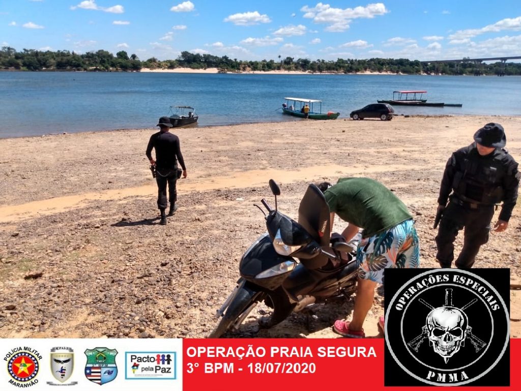 Em cumprimento ao Decreto Estadual n° 35.381/2020, bem como em observância ao art. 268 do Código Penal, tem por finalidade a garantia do cumprimento das medidas sanitárias durante o estado de calamidade pública de saúde a Polícia Militar, através do 3º BPM em Imperatriz, desencadeou neste fim de semana a operação “praia segura”, que tem como objetivo fiscalizar e coibir o consumo e comercialização de entorpecentes em toda a área do Rio Tocantins e praias, além do cumprimento das medidas sanitárias de proteção contra a pandemia do COVID 19.