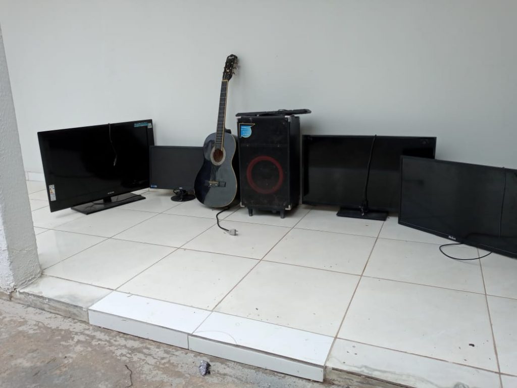Os militares foram informados por meio de denúncias de que havia uma intensa comercialização de drogas na região do Recanto dos Pássaros na referida cidade. Mediante as informações prestadas, a guarnição de serviço foi até o local para averiguar a denúncia, onde conseguiu prender os suspeitos e com eles um (01) violão, três (03) TVs, um (01) Caixa de som, um (01) monitor, R$- 1870,20 (mil oitocentos e setenta reais e vinte centavos), 125g de uma substancia semelhante à cocaína,7g de uma substancia semelhante à crack, um (01) revolver cal.32 com uma (01) munição intacta, quatro (04) celulares, um (01) relógio, um (01) porta cédula e sete (07) cartões magnéticos.