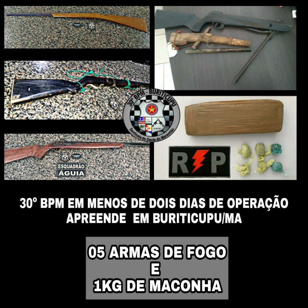 Polícia militar apreende 6 armas de fogo e drogas durante operação Saturação em Buriticupu