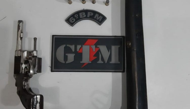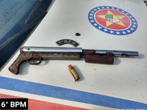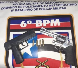 Já no Bairro Santa Clara, os militares realizavam rondas ostensivas pelas imediações do Beco do Mesquita, local onde é frequente a prática de assaltos a transeuntes. Quando a equipe policial do GTM avistou dois homens em atitude suspeita, ao procederem a abordagem foi encontrado em posse dos homens, um revólver calibre 38 e uma arma de fogo longa de fabricação artesanal. Diante dos fatos, os suspeitos identificados como, Jardiel Sousa de Sousa e Maurício Gonçalves da Silva, foram conduzidos ao Distrito Policial da Cidade Operária, autuados em flagrante por porte ilegal de arma de fogo.