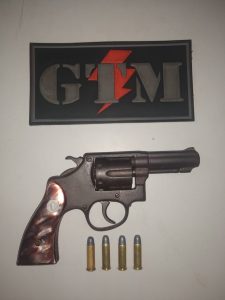 Durante rondas ostensivas no bairro Campina,policiais militares avistaram dois homens em atitude suspeita. De imediato os agentes de segurança procederam a abordagem e encontraram com os suspeitos: 08 (oito) trouxinhas de substância semelhante a maconha, 01(um) revólver calibre .38 com 04 munições intactas, 01(um) celular, uma quantia no valor de 22,00 (vinte e dois reais).