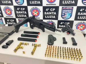 Polícia Militar apreende submetralhadora, pistola, carregadores e 152 munições em Santa Luzia/MA