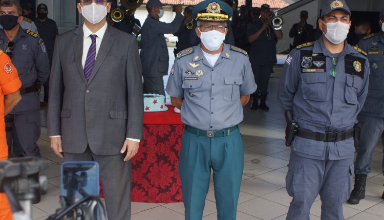 A Polícia Militar do Maranhão realizou na tarde de quarta-feira (17), solenidade alusiva ao aniversário de 184 anos. O evento foi transmitido pelo instagram da PM e marcado pela presença do alto comando da instituição, além do secretário de Segurança Pública, Jefferson Portela, do comandante geral do Corpo de Bombeiros, coronel Célio Roberto e da Banda de Música da PMMA.
