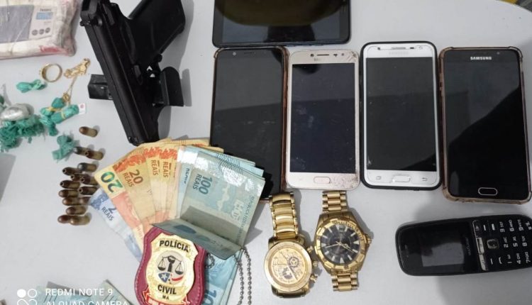 Os investigados foram autuados em flagrante por posse ilegal de arma de fogo, tráfico de drogas, associação para o tráfico, associação criminosa armada, receptação, cumprimento a mandado de prisão temporária, cumprimento do mandado de prisão definitiva e por prática do crime de roubo com emprego de arma de fogo de uso restrito.