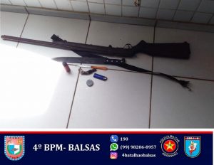A Polícia Militar através da guarnição de Rádio Patrulha (RP) em Balsas, prendeu na manhã de segunda-feira (14) um indivíduo, após ameaçar as vítimas utilizando arma de fogo. A guarnição da RP do 4º BPM deslocou até o local e prendeu o acusado com uma arma de fogo de fabricação caseira, pólvoras e espoletas. O Infrator foi encaminhado para a Delegacia de Polícia Civil, juntamente com o material apreendido.