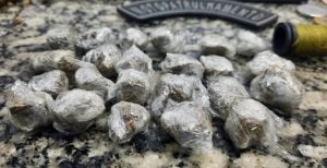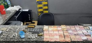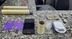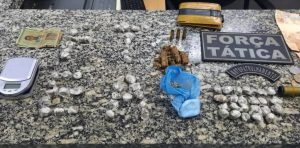 Uma equipe do Esquadrão Águia do 15º BPM, em Bacabal-MA, realizava a ronda noturna de quarta-feira (6), e ao passar pela rua Raimundo Correia, bairro Ramal, avistou dois homens em atitudes suspeitas. Ao proceder as buscas e abordagens foram encontradas 63 petecas de uma substância conhecida por tof-tof (tipo de maconha), uma balança de precisão, porções de uma substância esverdeada aparentando maconha, porções de um pó semelhante a cocaína, três tubos de papel filme, um tubo de linha, três cápsulas calibre .32mm, uma pedra de substância análoga a crack, uma chave de moto, um aparelho celular e R$ 357,25 em espécie.