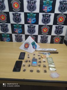 Na madrugada de quarta-feira (20), uma equipe do Esquadrão Águia do 3º BPM, em Imperatriz-MA, realizava rondas pelo Parque Anhanguera e ao passar pela rua João Pessoa abordou um homem e após a busca pessoal foi encontrado uma balança de precisão, 17 porções de substância semelhante a maconha, um celular, uma faca e R$ 22,00. Os policiais localizaram o local de venda da droga e prenderam uma mulher. A dupla foi conduzida para a Delegacia Regional de Imperatriz-MA para os procedimentos legais.