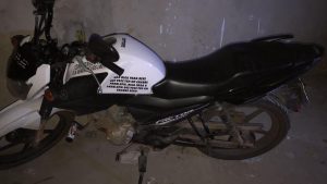 Na noite deste sábado (02) a guarnição do Grupo Tático Móvel da 1ª Unidade de Segurança Comunitária recebeu informação sobre 03 indivíduos utilizando uma casa abandonada na Avenida Mar e Sol para guardar uma motocicleta roubada. De imediato foi feita a incursão ao local onde foram abordados os dois conduzidos, Wellington Almeida Oliveira e Elias Ferreira Neto.