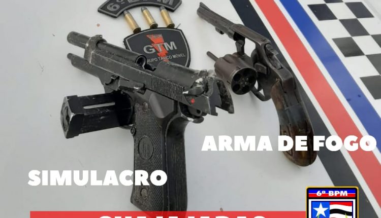 A Polícia Militar por meio do 6º BPM na noite desta segunda-feira (16), durante operações realizadas com o objetivo de abordar pessoas, veículos e ônibus no intuito de apreender armas, drogas e principalmente evitar que crimes ocorram e sua área de atuação, apreendeu um revolver calibre 32, uma arma longa calibre 12 de fabricação caseira, dois simulacros de armas de fogo, dois revolveres calibre 38, um fação, recuperou um carro tomado de assalto, quatro motocicletas e prendeu seis pessoas.