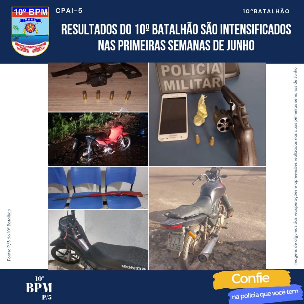 Entre os dias 05 e 10 junho os policiais já retiraram de circulação quatro armas de fogo, sendo dois revólveres calibre .38, um revólver calibre .32 e uma espingarda; além disso foram recuperados de três motocicletas tomadas de assalto de seus proprietários.